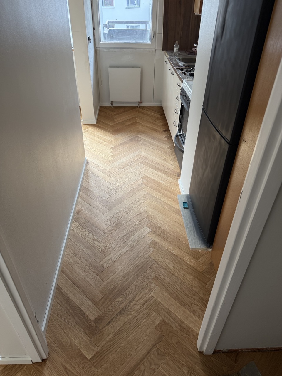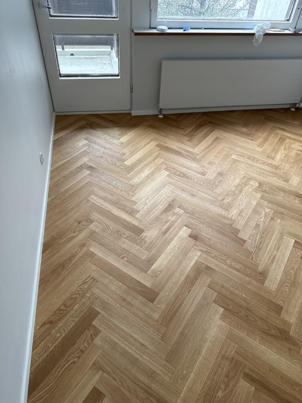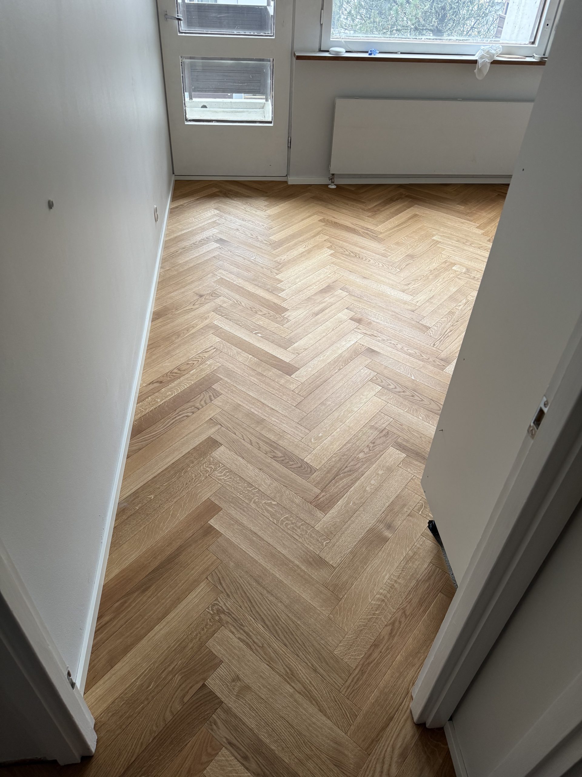Parkettistudio Helsinki asensi asiakkaalleen upean puuvalmiin Tammi Select Kalanruotoparketin Lauttasaareen. Kaikki Heritage- kokoelman kerrosrakenteiset parketit ovat pintakäsittelemättömiä, ja vaativat pintakäsittelyn asennuksen jälkeen. Pintakäsittelyksi valikoitui luonnollinen ja laadukas Natura Onecoat 2K-puuöljy (Clear).